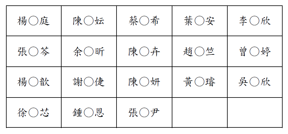 參賽選手名單如下: